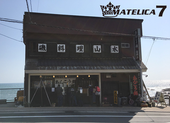 お昼は、海の眺めがいい磯料理山水さんでアンコウ鍋and鯛の煮付け。ばかウマ!